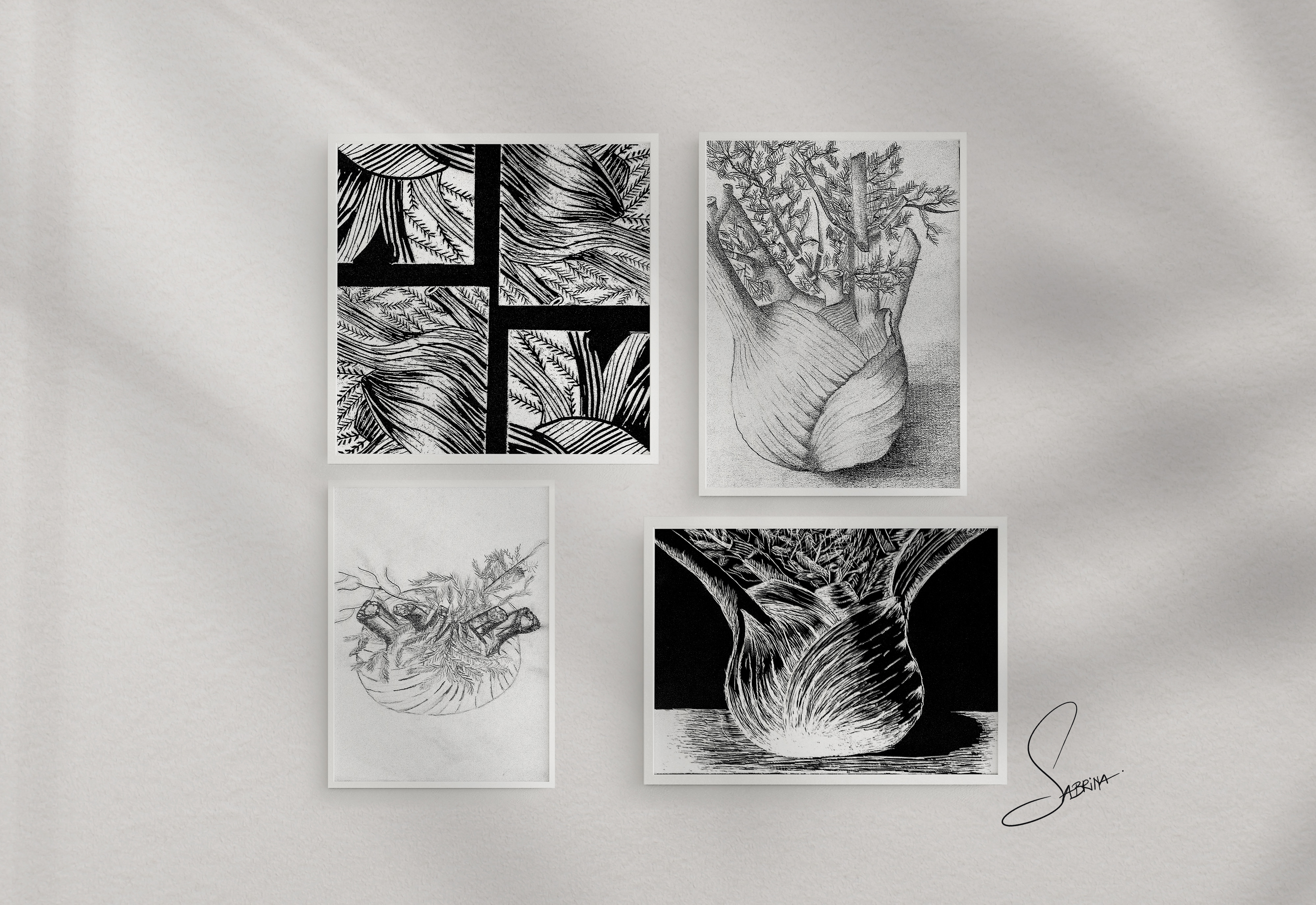 Bleistift auf Papier | Linolschnitt | Kratztechnik